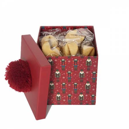 À l'intérieur de cette belle boîte aux teintes de Noël, vous trouverez des fortune cookies délicieux et croquants. Chaque biscuit renferme un message inspirant, une pensée positive, un challenge personnel, une citation porte-bonheur, un vœu ou une prédiction positive...
